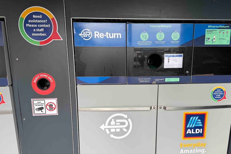Ireland runs a national 'Return Scheme' for drinks bottles and cans. Anything bearing the "R" logo is worth its deposit money when taken to a participating retailer.